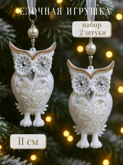 Елочные игрушки набор 2 шт. Сова 11 см, белая серия