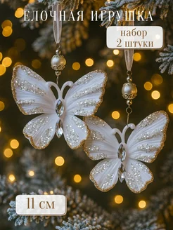 Елочные игрушки Бабочка 11 см. набор 2 шт, белая серия