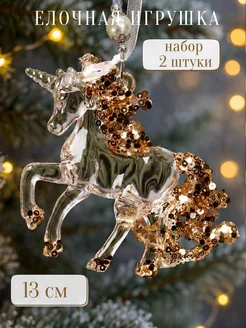 Елочные игрушки Лошадь Единорог 13см, 2 шт, "розовое золото"