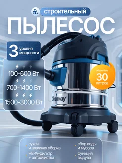 Пылесос строительный мощный 3000Вт, 30л сбор воды D-30