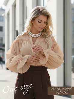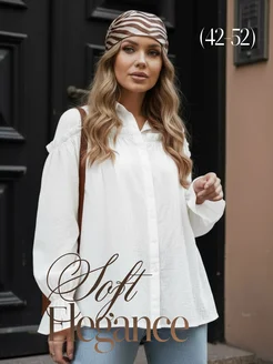 Рубашка нарядная женская белая оверсайз хлопок с воланами