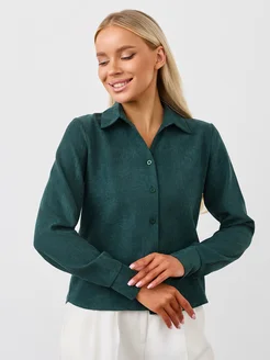 Рубашка вельветовая в офис укороченная
