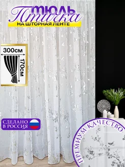 Тюль под лён на шторной ленте с утяжелителем 300x170см