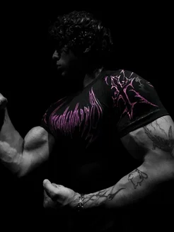Футболка оверсайз черная для качалки с принтом