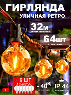 Гирлянда садовая уличная ретро 32 м 64 ламп