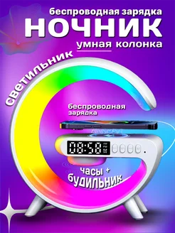 Блютуз колонка ночник с беспроводной зарядкой и подсветкой
