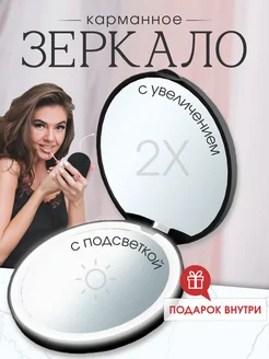Зеркало карманное складное с подсветкой и увеличением