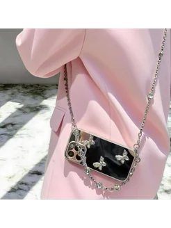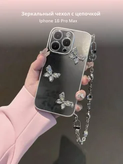 Чехол с бабочками на Phone 16 pro Max с цепочкой