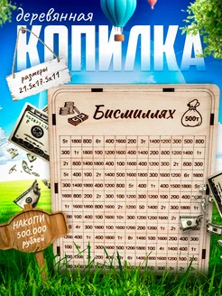 Копилка деревянная с цифрами для денег Бисмиллях 500к