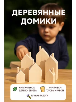 Деревянные домики, комплект из 3 шт, размер 14, 12, 10 см