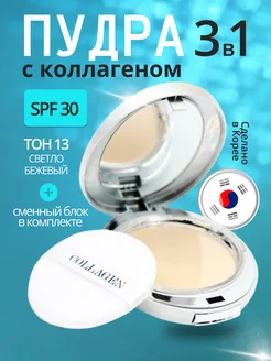 Компактная и матирующая пудра для лица Collagen 3в1 тон 13