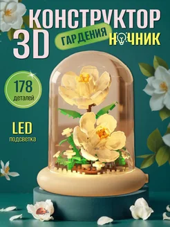 Лего цветы конструктор в колбе с подсветкой Гардения