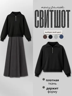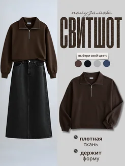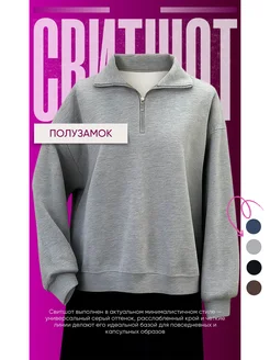 Свитшот полузамок оверсайз на молнии с замком поло y2k
