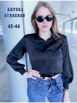 Блузка рубашка укороченная атласная