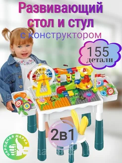 Конструктор детский крупный со столом и стулом 155 деталей