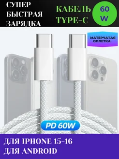 Кабель type-c type-c 60W для зарядки android и Iphone 16 15