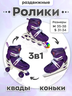Ролики для девочек и мальчиков раздвижные 3 в 1