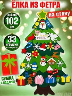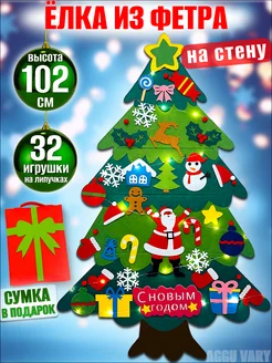 Елка из фетра с игрушками на липучках на стену
