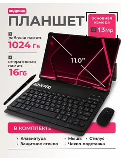 планшет Pad16Pro,16+1 ТБ,с клавиатурой, Android, 11"