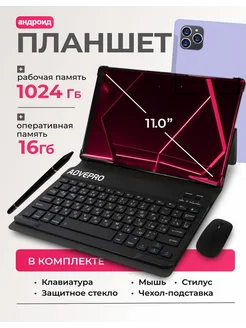 Планшет андроид Pad15 Pro с клавиатурой и мышкой 16 1024GB
