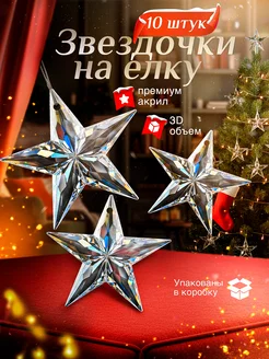 Новогодние игрушки на елку прозрачные набор из акрила звезда