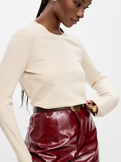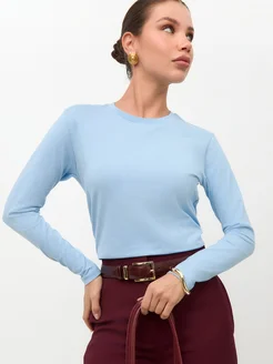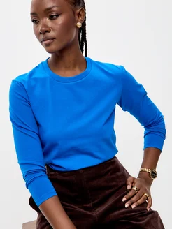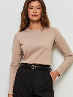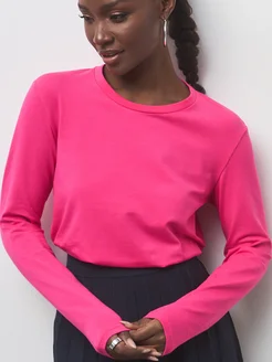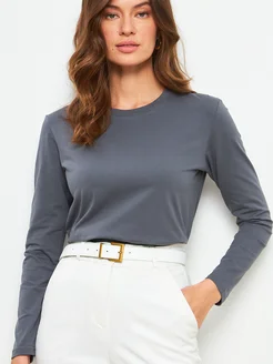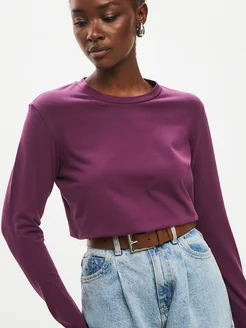 Лонгслив оверсайз в полоску базовый с круглым вырезом