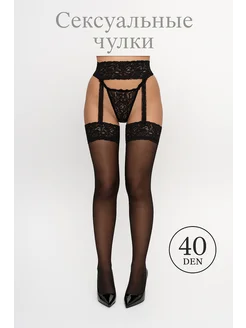 Чулки в сетку с поясом черные