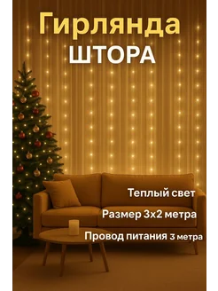 Гирлянда штора 3х2 желтый свет