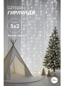 Гирлянда штора 3х2 белый свет
