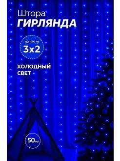 Гирлянда штора 3х2 синий свет