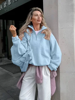 Свитшот оверсайз полузамок флисовый мягкий кофта на молнии