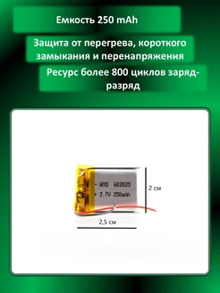 Аккумулятор универсальный 602025 (6*20*25 мм) 250 mAh