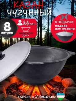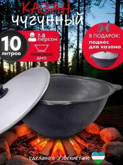 Казан узбекский чугунный с крышкой 10 литров плоское дно