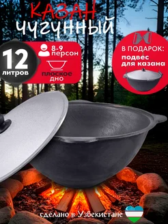 Казан чугунный 12 литров узбекский с крышкой плоское дно