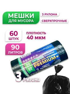 Мешки для мусора 90 л, 60 шт, 40 мкм, Особо прочные Premium+