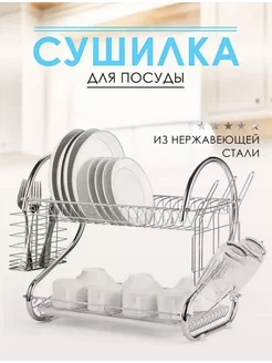 Сушилка для посуды настольная с поддоном двухъярусная