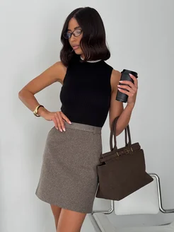 Юбка коричневая в клетку мини