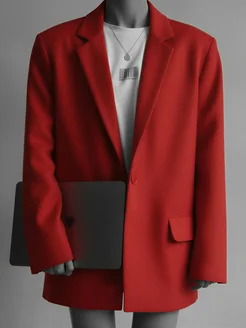 Пиджак красный удлиненный оверсайз