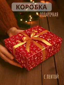 Новогодняя Подарочная Коробка 21х20 5х8 см с Лентой