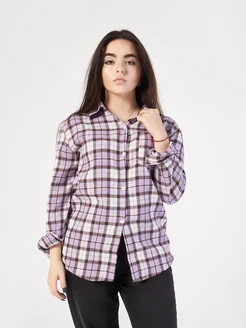 Рубашка женская в клетку оверсайз фиолетовая