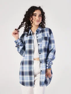 Рубашка женская синяя в клетку