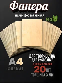 Фанера для трудов 3 мм без рисунка А4 набор 20шт