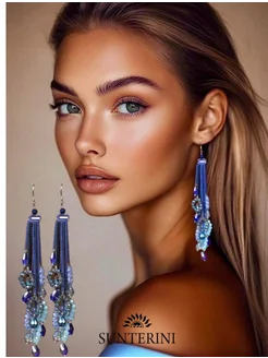 Серьги голубые длинные бижутерия