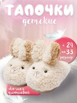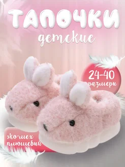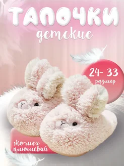 Тапочки домашние детские зайцы меховые розовые размер 28-29