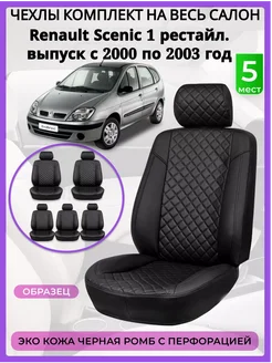 Чехлы сиденья Renault Scenic 1 рест экокожа черная ромб