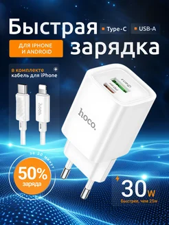 Зарядка для iPhone 11 12 13 14 Type-C Lightning 30W USB PD