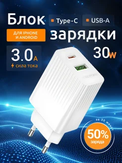 Блок для iphone адаптер быстрой зарядки USB Type-C 30w