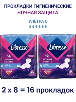 Прокладки Libresse ультра Ночь 6 капель. 2уп по 8шт