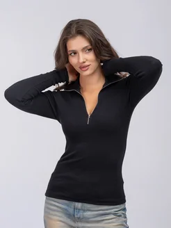 Лонгслив зипка на молнии в рубчик