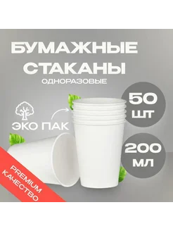 Стаканы бумажные одноразовые 200 мл набор 50 шт